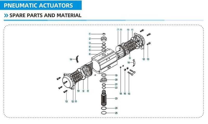 The double-acting pneumatic actuator operates by supplying compressed air alternately to two chambers within a cylinder. The key components include: